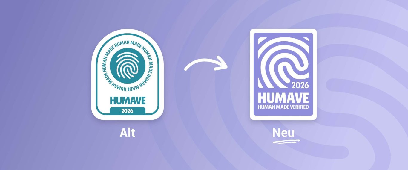 Schütze deine Arbeit vor KI-Content und mach deine Inhalte als echte menschliche Leistung sichtbar. Die ersten 100 Plätze sind kostenlos – trage dich jetzt in unsere Warteliste ein: Jetzt HUMAVE Siegel sichern.